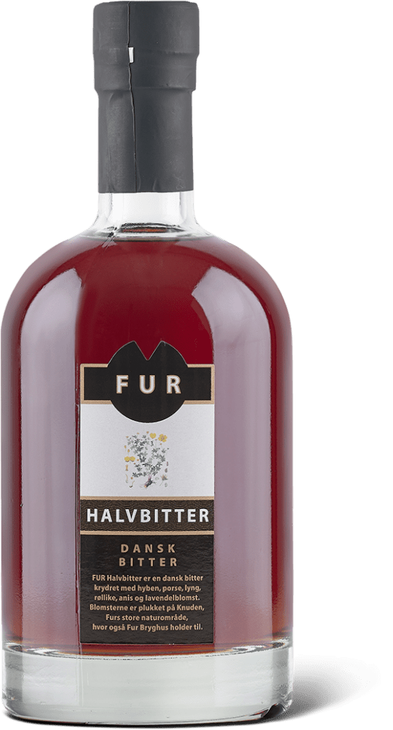 Fur Halvbitter er en dansk bitter krydret med hyben, porse, lyng, røllike, anis og lavendelblomst.